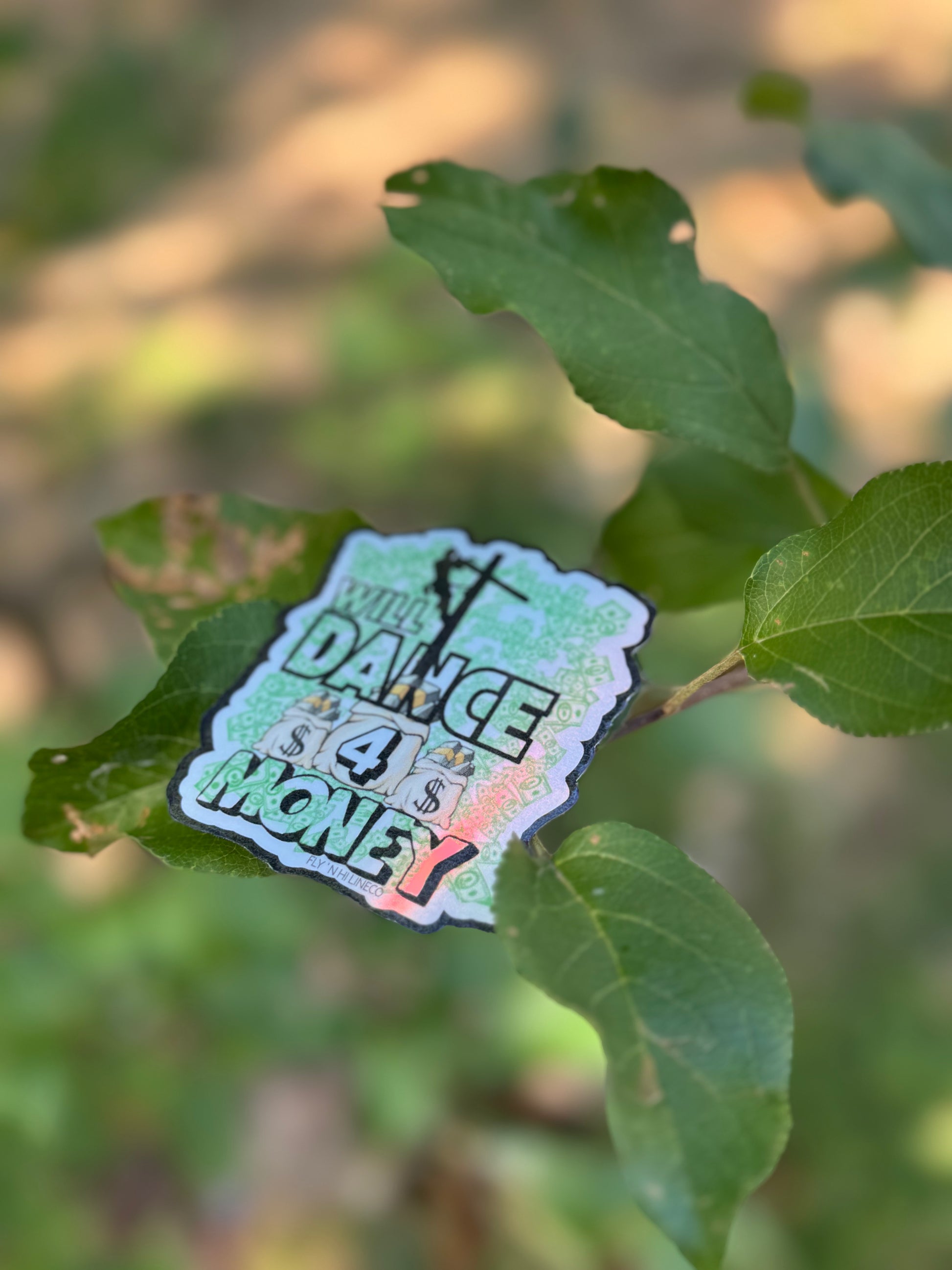 Holographic, waterproof will dance for money lineman sticker, it is 2.6” by 2.6” can be made into bigger sizes.