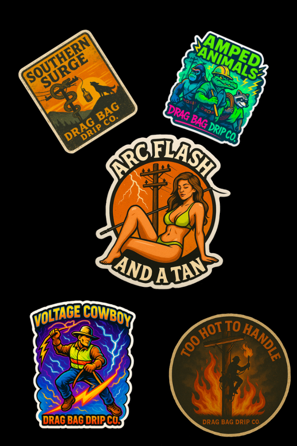 The Drag Bag Drip Co. 40-Pack Vault drops every design we’ve ever released into one hell-raising sticker stack. From storm shifts to backfeed bastards, lineman fuel to phase-to-face hits — it’s all here, ready to slap on whatever you’re proud of (or pissed at).